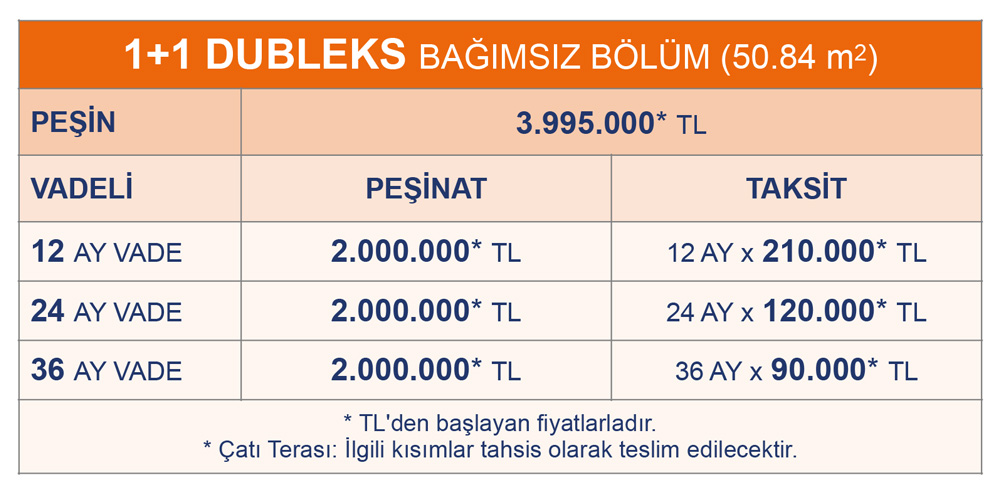 *** Ödeme planı fiyat listesinden farklılık gösterebilir.