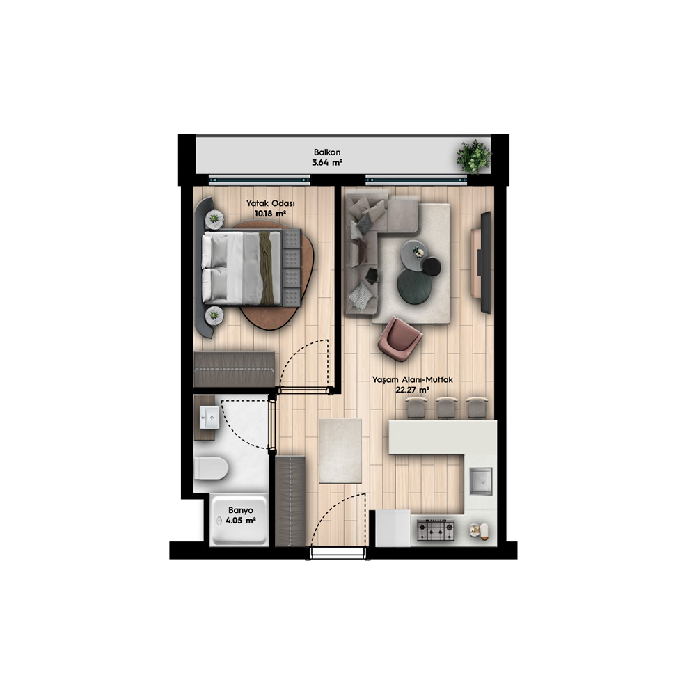 1+1 Dublex – Bağımsız Bölüm Alanı = 50.84 m2
