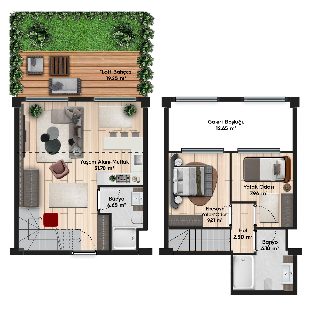 Bahçe Loft – Bağımsız Bölüm Alanı = 81.15 m2